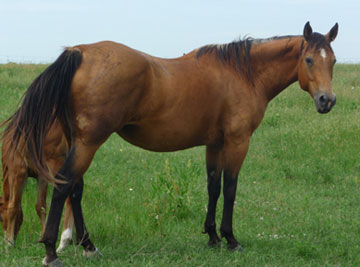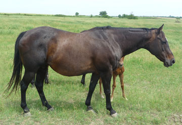 This mare is stout, good boned, and a confirmation to please. She goes back to a lot of great horses. Just look at her pedigree - Triple Chicks, Johnny Dial, Top Bert, Pana Bar who goes back to Lightning Bar.